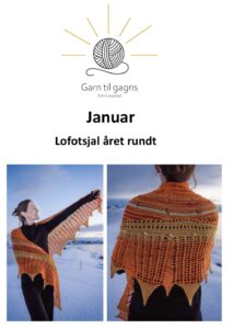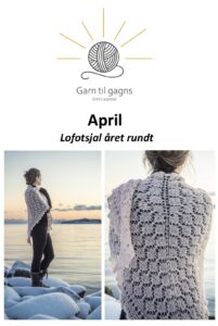 Ingen må lure seg selv og tro at april er noe annet enn en vintermåned i nord. Selv om den kan varte opp med varme dager innimellom. Så vi tar en lys pastell vinterfarge i sjalet for april samtidig som vi speider etter varmen og våren som skal komme.
