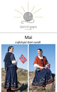 Lofotbunaden er aller vakrest som den er, men på kjølige høytidsdager kan det vært lunt med et sjal. Jeg har valgt å lage maisjalet i to ulike farger som passer til Lofotbunaden. Terracotta rød "Ask" fra Hillesvåg ullvarefabrikk, og blå finull fra Rauma. Sjalet har knyttebånd og en avrundet halsåpning som gir et fint fall over nakken.