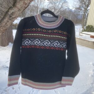 Lofotmønster laget jeg for rundt 40 år siden og strikket den gang mange gensere til både voksen og barn, nå har jeg tatt det frem igjen og lager barneklær i merinoull/superwash